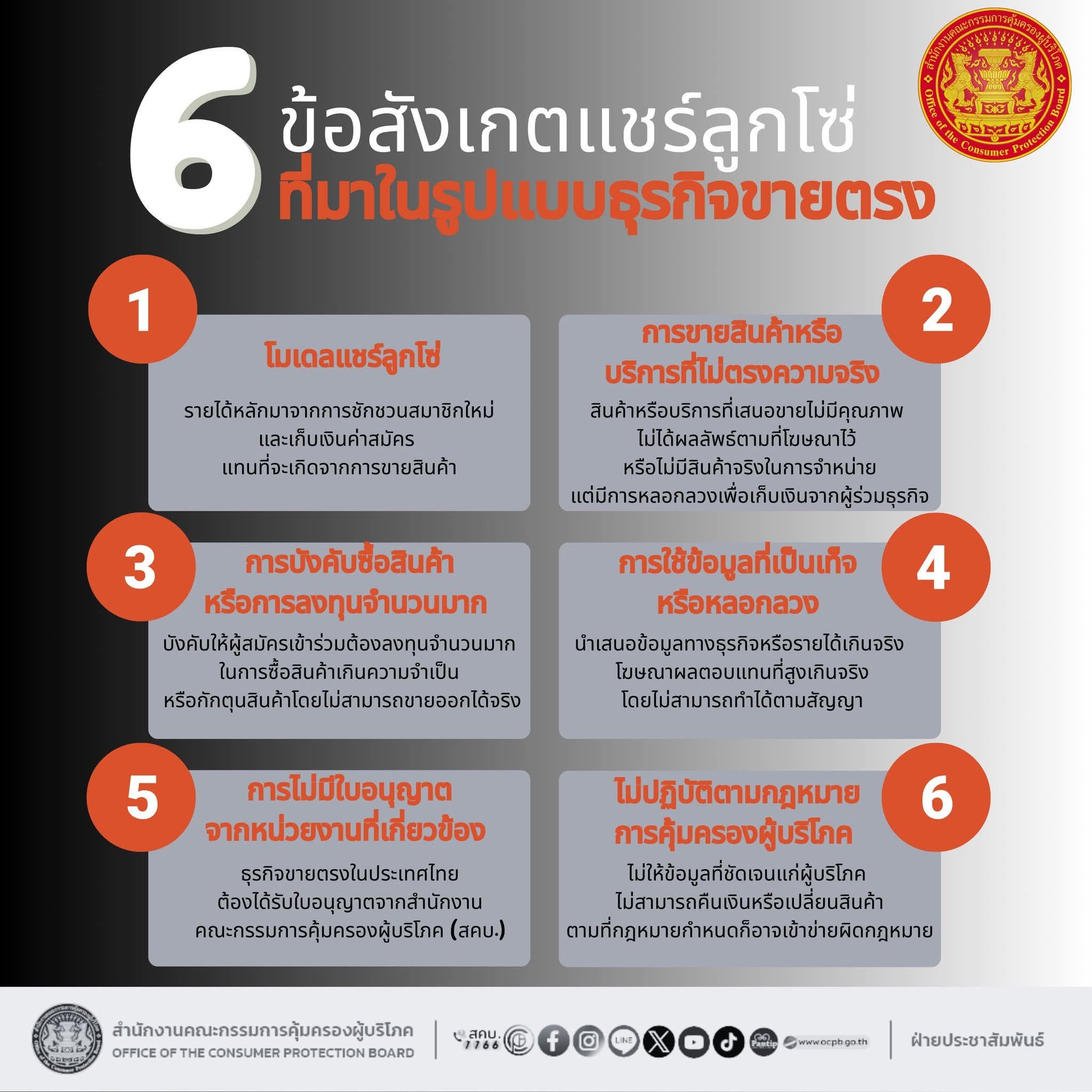 6 ข้อสังเกตแชร์ลูกโซ่ ที่มาในรูปแบบธุรกิจขายตรง Facebook : สำนักงานคณะกรรมการคุ้มครองผู้บริโภค Insta