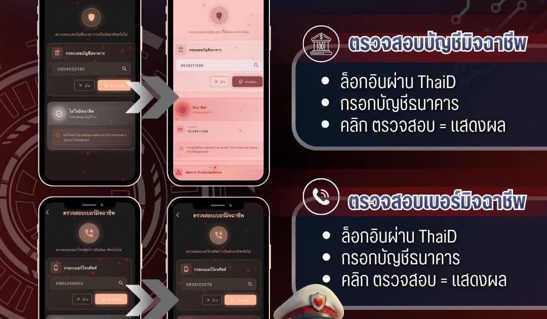 สำนักงานตำรวจแห่งชาติ เปิด 2 ฟีเจอร์ใหม่ แอปพลิเคชัน POLICE CARE “ตรวจสอบบัญชีมิจฉาชีพ” และ “ตรวจสอบเบอร์มิจฉาชีพ” เช็กได้ เช็กก่อน โหลดไว้ ไม่ต้องรอให้เกิดเหตุ