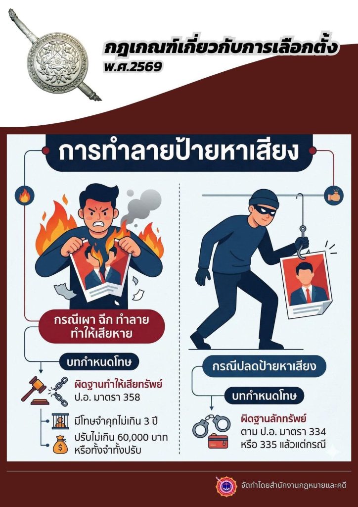 กฎเกณฑ์เกี่ยวกับการเลือกตั้ง 2569 20 มกราคม 2569 โดย admin / ข่าวประชาสัมพันธ์ กฎเกณฑ์เกี่ยวกับการเลือกตั้ง 2569การทำลายป้ายหาเสียง