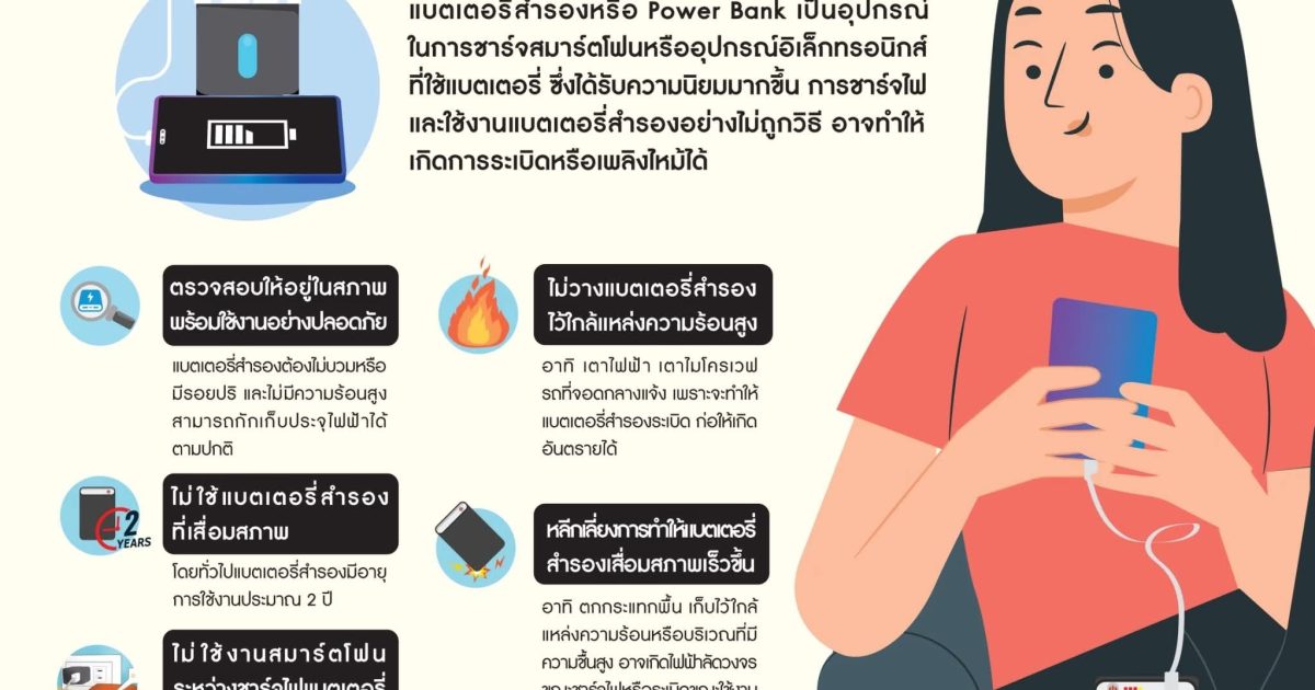 กรมป้องกันและบรรเทาสาธารณภัย (ปภ.) แนะวิธีใช้งานแบตเตอรี่สำรองอย่างปลอดภัย ลดเสี่ยงอันตราย