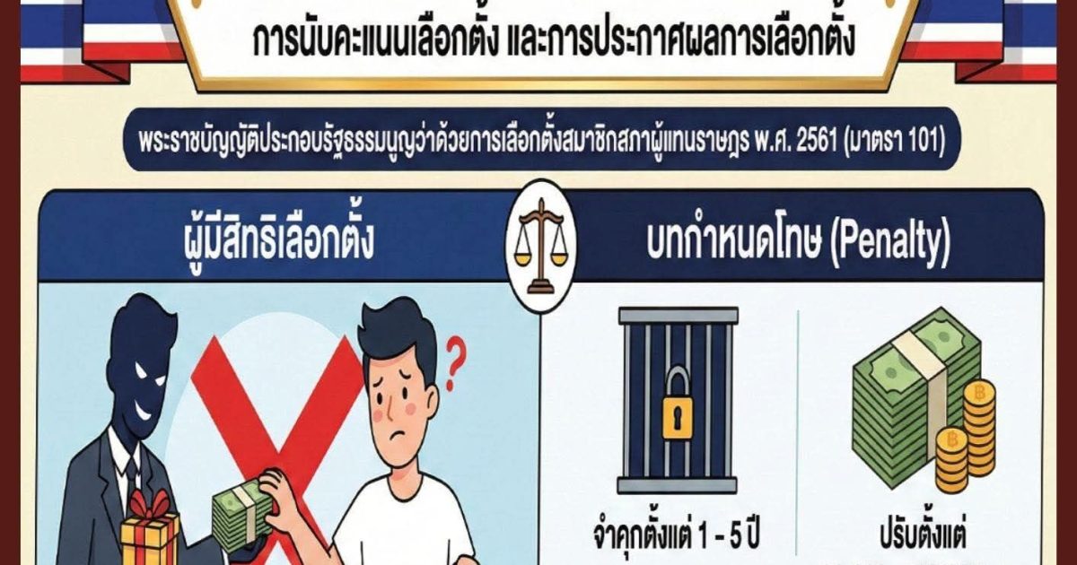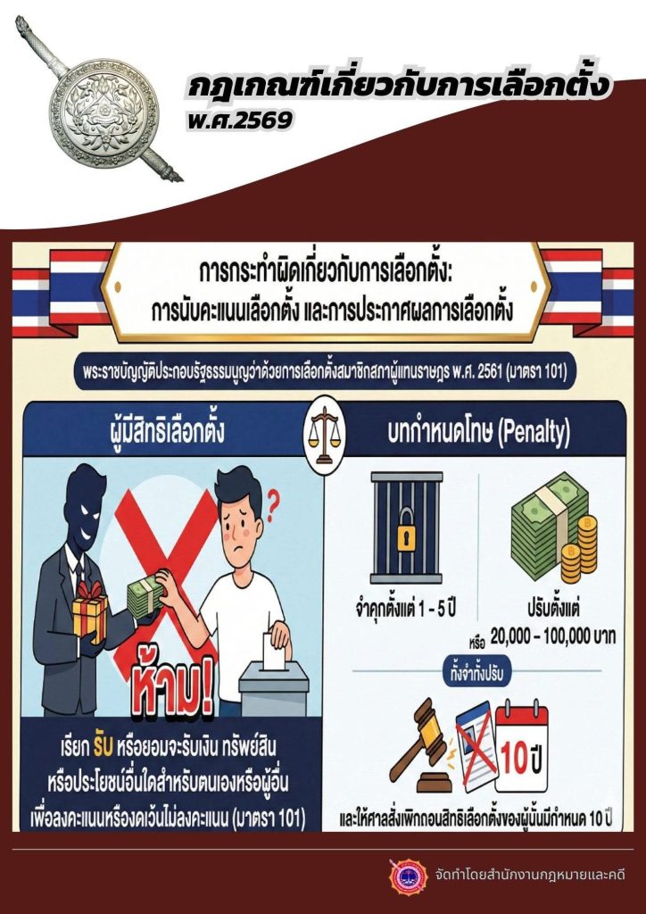 การกระทำผิดเกี่ยวกับการเลือกตั้ง 20 มกราคม 2569 โดย admin / ข่าวประชาสัมพันธ์ การกระทำผิดเกี่ยวกับการเลือกตั้งการนับคะแนน และการประกาศผลการเลือกตั้ง