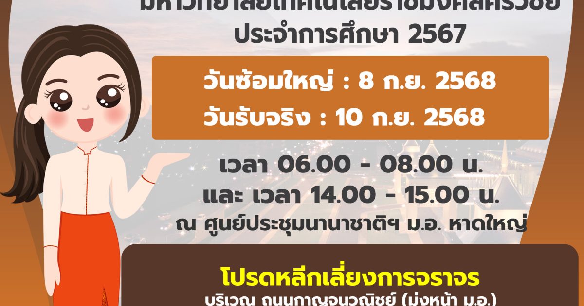 เนื่องด้วยมหาวิทยาลัยเทคโนโลยีราชมงคลศรีวิชัย จัดพิธีพระราชทานปริญญาบัตรแก่ผู้สำเร็จการศึกษาประจำปีการศึกษา 2567