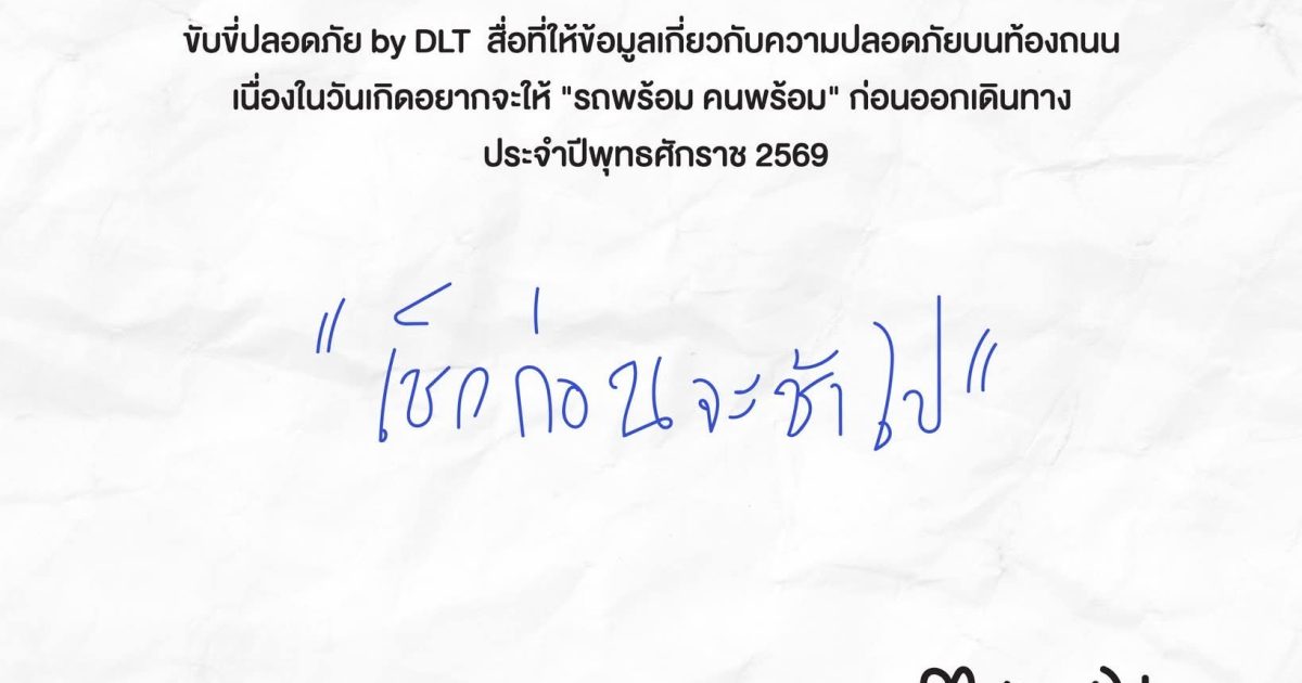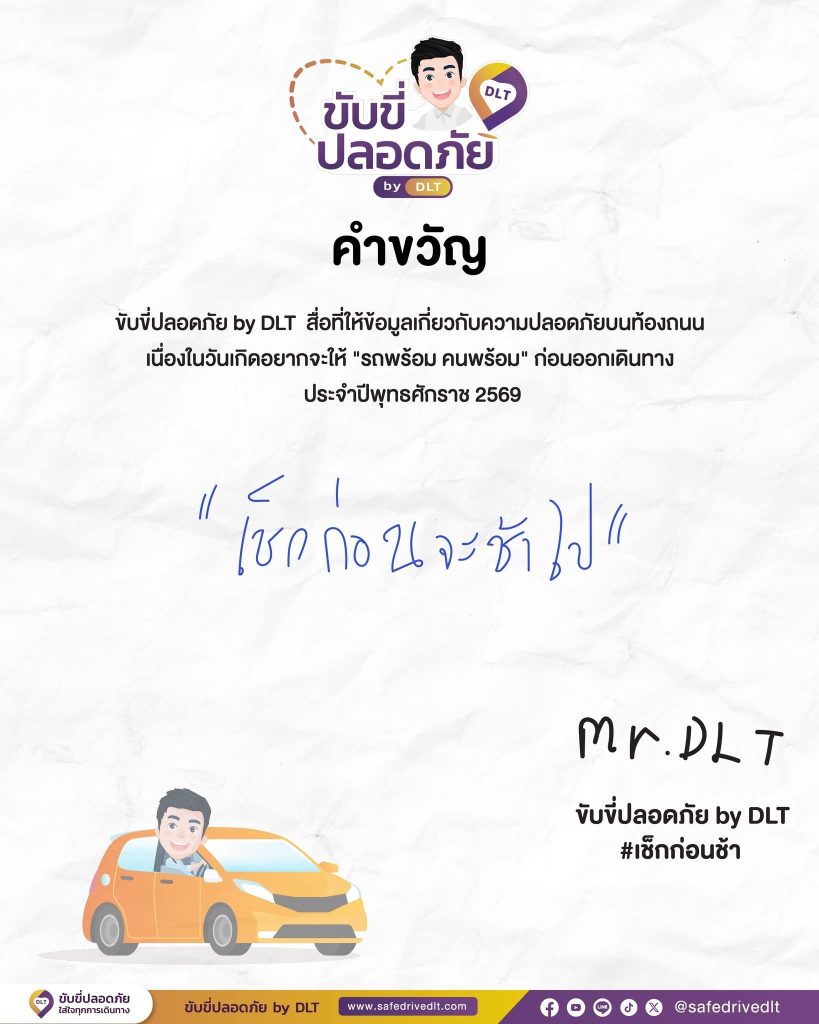 ขับขี่ปลอดภัยbyDLT 23 ธันวาคม 2568 โดย admin / ข่าวประชาสัมพันธ์ ขับขี่ปลอดภัยbyDLTเช็กรถให้พร้อมเช็กทางให้รู้เช็กคนขับให้ไหว