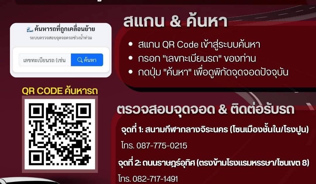 ตรวจสอบ และค้นหารถของท่านได้ผ่าน QR CODE 4 ธันวาคม 2568 โดย admin / ข่าวประชาสัมพันธ์ ตำรวจภูธรภาค 9 ร่วมกับตำรวจนครบาล ดำเนินการเปิดเส้นทางจราจรในเมืองหาดใหญ่ จ.สงขลา โดยใช้รถยกทำการเคลื่อนย้ายรถของผู้ประสบภัยน้ำท่วมที่ยังจอดทิ้งไว้ซึ่งกระทบการจราจร ไปเก็บไว้ในพื้นที่เก็บรักษาชั่วคราว 3 แห่ง.ชาวหาดใหญ่สามารถตรวจสอบ และค้นหารถของท่านได้ผ่าน QR CODEขออภัยในความไม่สะดวกมา ณ โอกาสนี้#น้ําท่วมหาดใหญ่#น้ําท่วมภาคใต้#สํานักงานตํารวจแห่งชาติ#Royalthaipolice