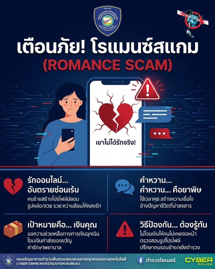 ตำรวจไซเบอร์ เตือนภัย โรแมนซ์สแกม