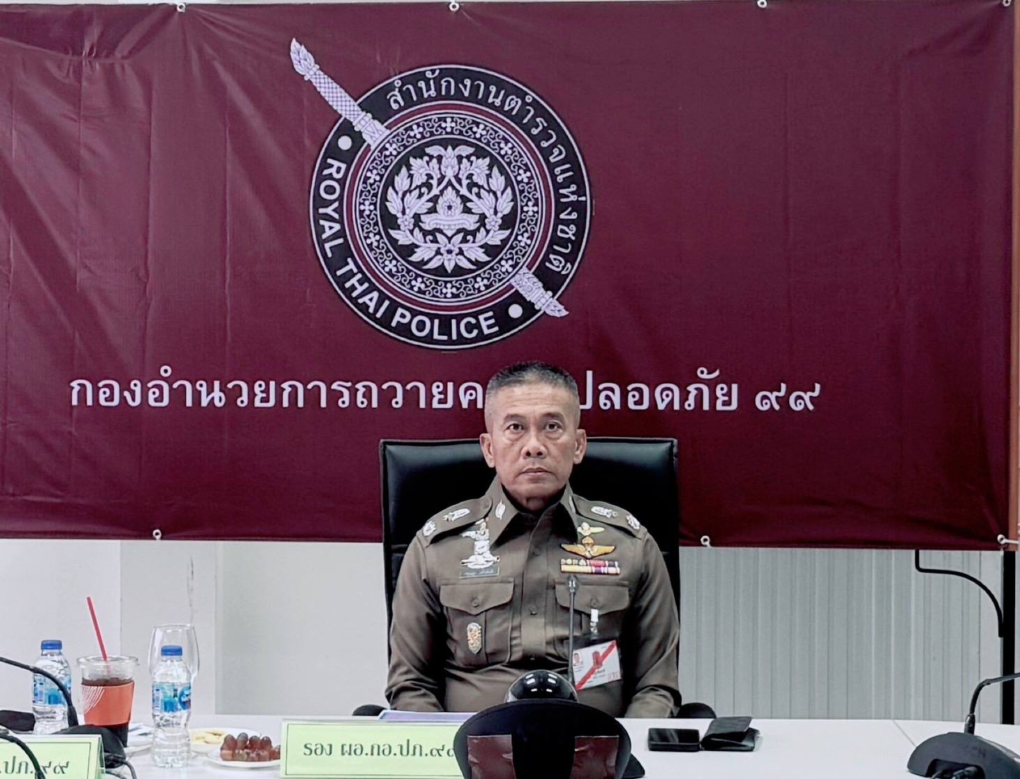 พร้อม ข้าราชการตำรวจ กอ.ปภ.99 ร่วมประชุมชี้แจงความพร้อม สถานภาพกำลังพลและกำหนดภารกิจการปฏิบัติ แผนถวายความปลอดภัย สมเด็จพระกนิษฐาธิราชเจ้า กรมสมเด็จพระเทพรัตนราชสุดาฯ สยามบรมราชกุมารี ณ ห้องประชุม กอ.ปภ.99 เขตพระราชฐานชั้นนอก พระตำหนักทักษิณราชนิเวศน์ ต.กะลุวอเหนือ อ.เมืองนราธิวาส จว.นราธิวาส
