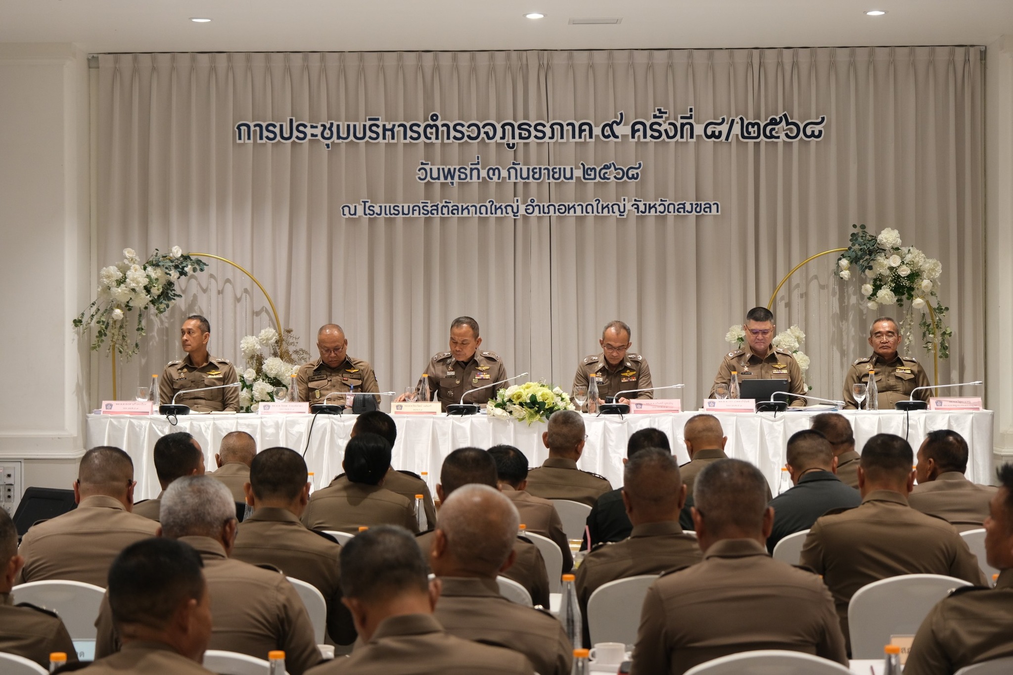 ผกก./ผู้แทน หัวหน้าหน่วยสถานี ทุก สภ.ในพื้นที่ ภ.9 พร้อม จนท.ฝ่ายที่เกี่ยวข้องร่วมการประชุม ณ ห้องประชุมออกฟอร์ดแกรน ชั้น 1 โรงแรมคริสตัล อ.หาดใหญ่ จว.สงขลา