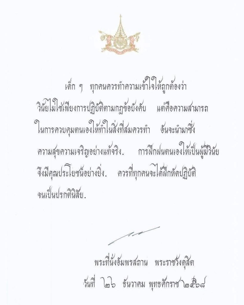 พระบาทสมเด็จพระเจ้าอยู่หัว พระราชทานพระบรมราโชวาท เนื่องในวันเด็กแห่งชาติ ประจำปี ๒๕๖๙ เพื่อเชิญลงพิมพ์ในหนังสือวันเด็กแห่งชาติ พุทธศักราช ๒๕๖๙