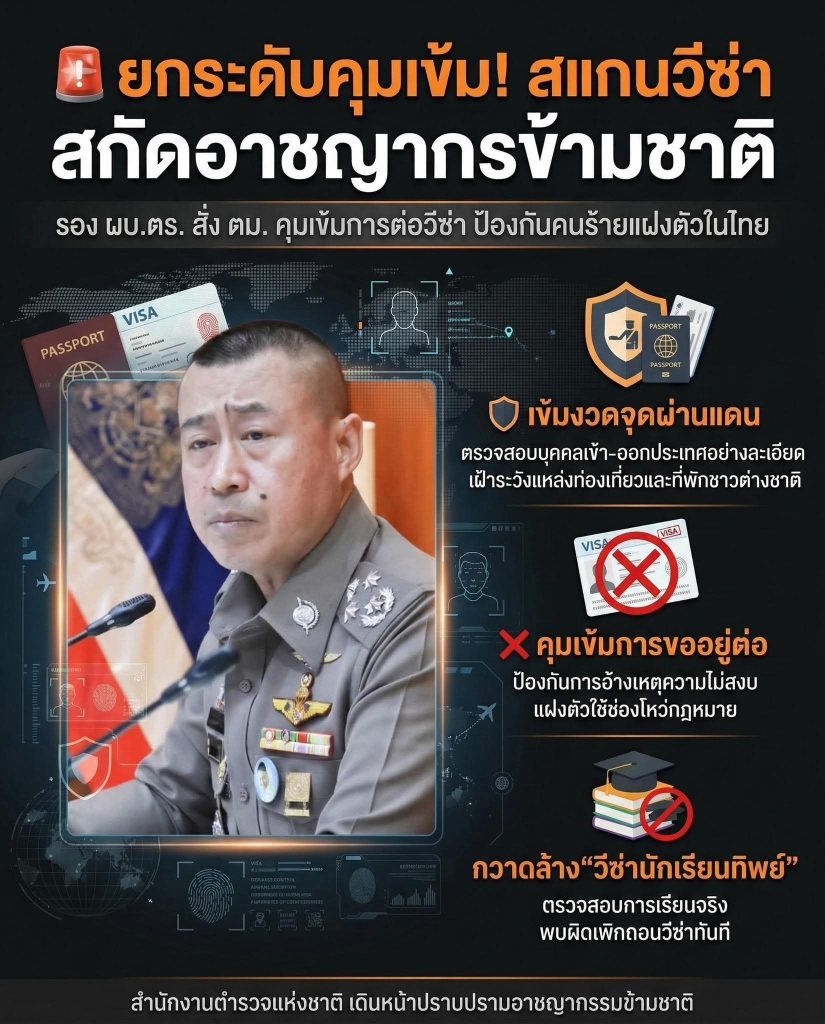 ยกระดับคุมเข้ม! รอง ผบ.ตร. สั่ง ตม. สแกนเข้มการต่อวีซ่า สกัดกั้นอาชญากรข้ามชาติแฝงตัวในไทย