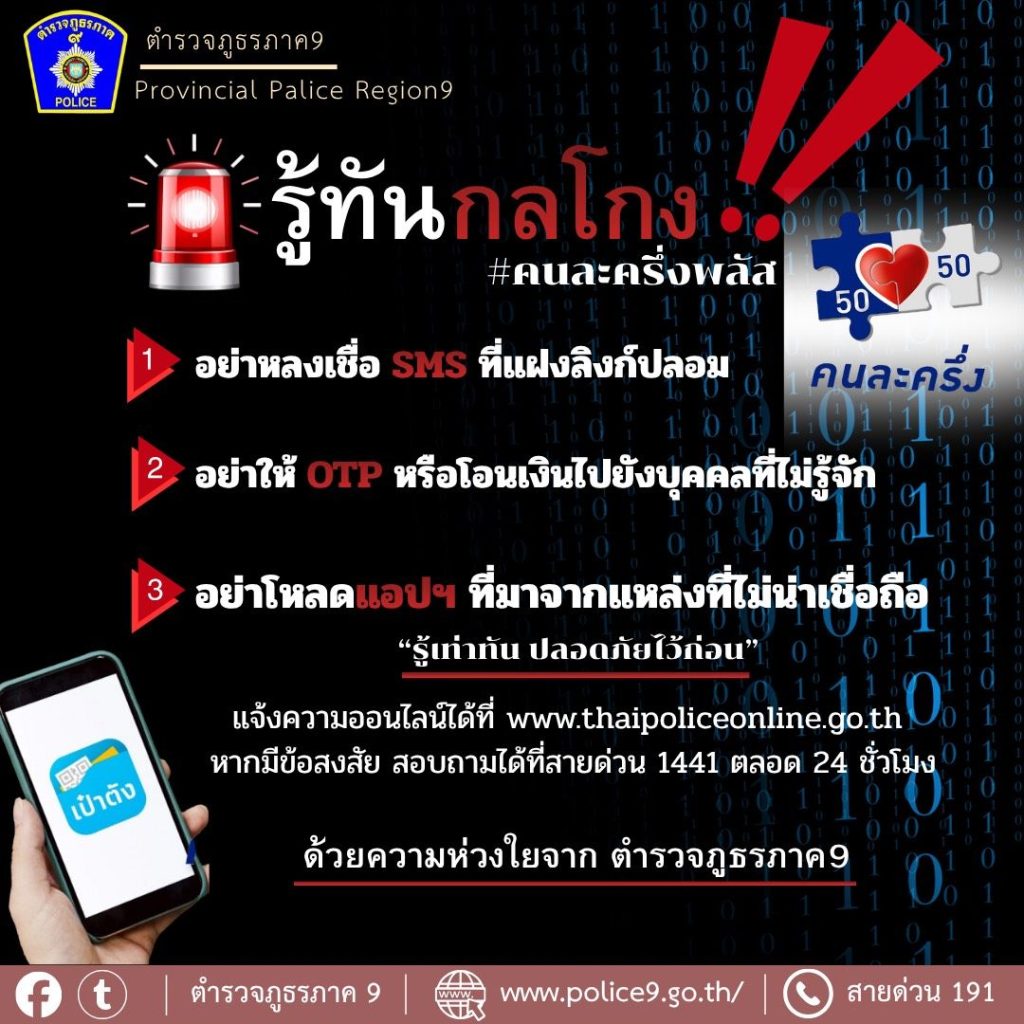 รู้ทันกลโกง คนละครึ่ง 7 พฤศจิกายน 2568 โดย admin / ข่าวประชาสัมพันธ์ รู้ทันกลโกง คนละครึ่งด้วยความปรารถนาดีจาก : ตำรวจภูธรภาค9