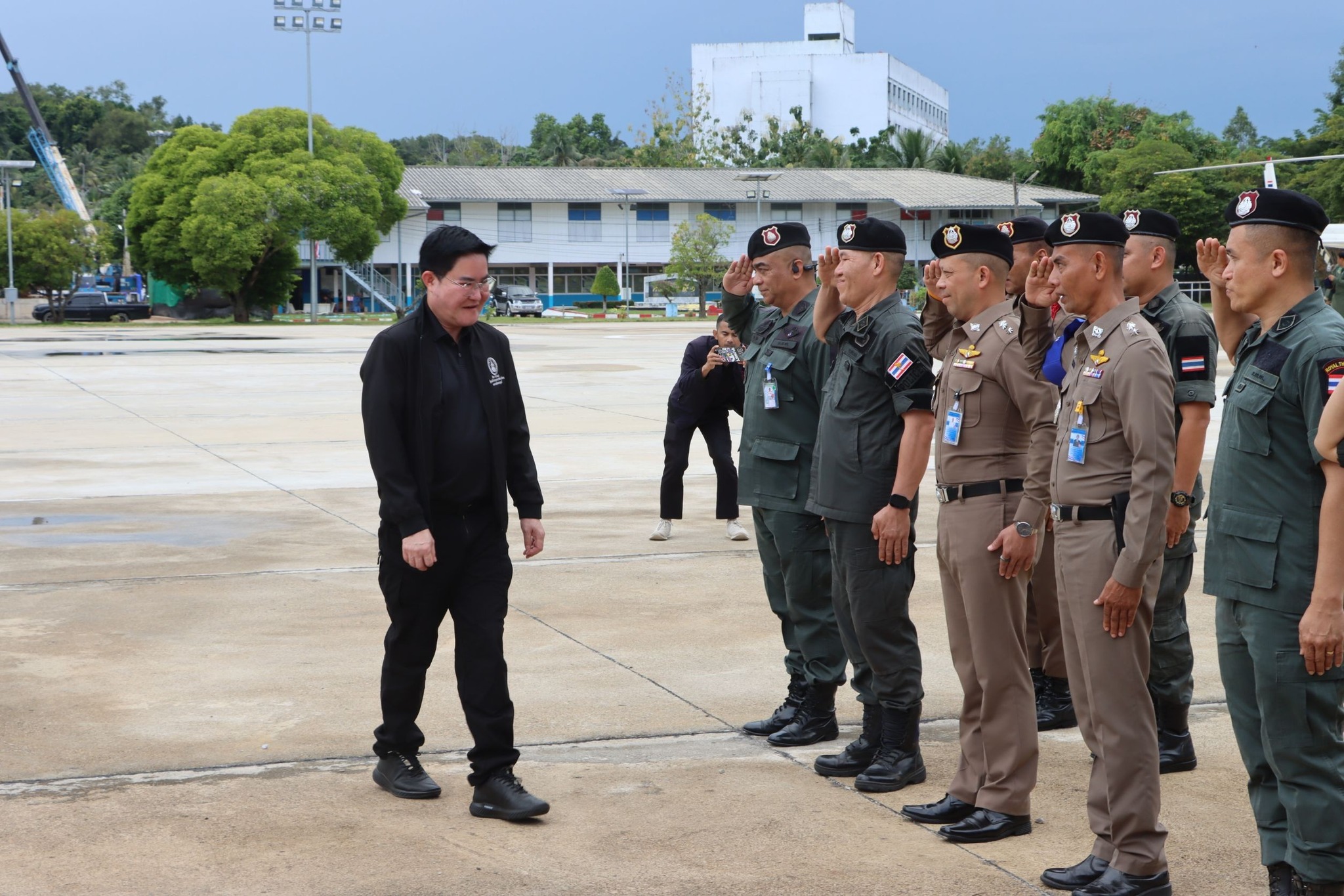 พร้อมหัวหน้าส่วน ศูนย์ งานและเจ้าหน้าที่ผู้เกี่ยวข้อง ร่วมให้การต้อนรับ นายอัครา พรหมเผ่า รัฐมนตรีว่าการกระทรวงการพัฒนาสังคมและความมั่นคงของมนุษย์ (รมว.พม.) และคณะ เดินทางมาปฏิบัติภารกิจในพื้นที่ จชต. ณ ลาน ฮ. ศปก.ตร.สน. อ.เมืองยะลา จว.ยะลา