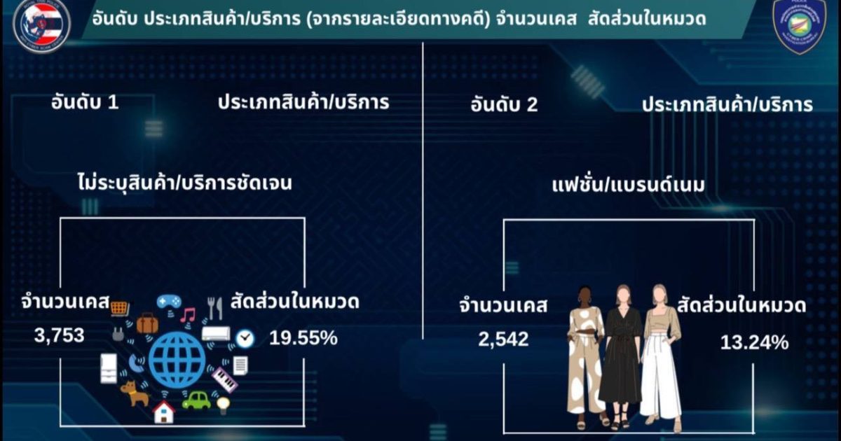 รอง ผบ.ตร./ผอ.ศปอส.ตร. และ พล.ต.ท.จิรภพ ภูริเดช ผู้ช่วย ผบ.ตร./รอง ผอ.ศปอส.ตร. เปิดสถิติคดีและความเสียหายเกี่ยวกับการหลอกลวงออนไลน์ ในรอบเดือนกุมภาพันธ์ จำนวน 28,180 เคส พบว่าอันดับ1 ที่มีการแจ้งความเข้ามามากที่สุด คือ การหลอกซื้อสินค้าและบริการ ซึ่งในรูปแบบการหลอกนี้ยังพบว่าจำนวนคดีมากที่สุด เป็นการหลอกซื้อสินค้าทั่วไปกว่า 3,753 เคส ขณะที่สินค้าแฟชั่น/แบรนด์เนม และอาหาร/เครื่องดื่ม รองลงมาตามลำดับ ซึ่งพบโปรไฟล์ปลอมที่ใช้ซ้ำมากที่สุดชื่อ “โดนัททท นัท” ขายบัตรคอนเสิร์ต จำนวน 23 เคส มูลค่าความเสียหายกว่า 2.2 แสนบาท