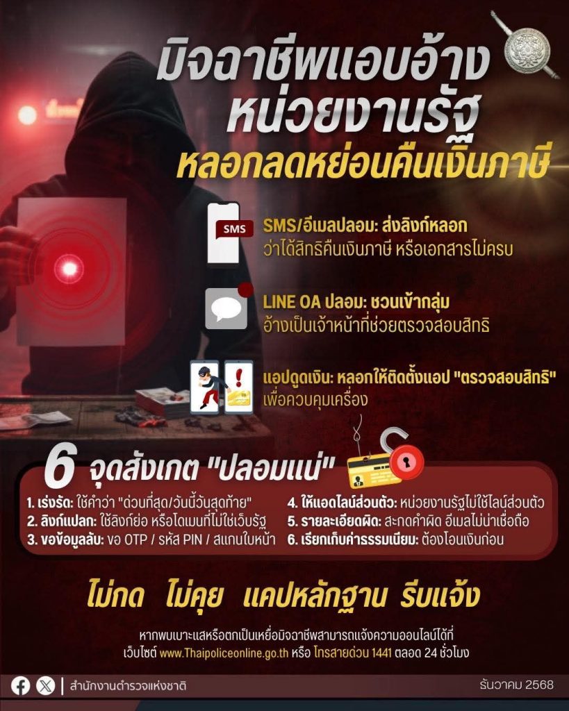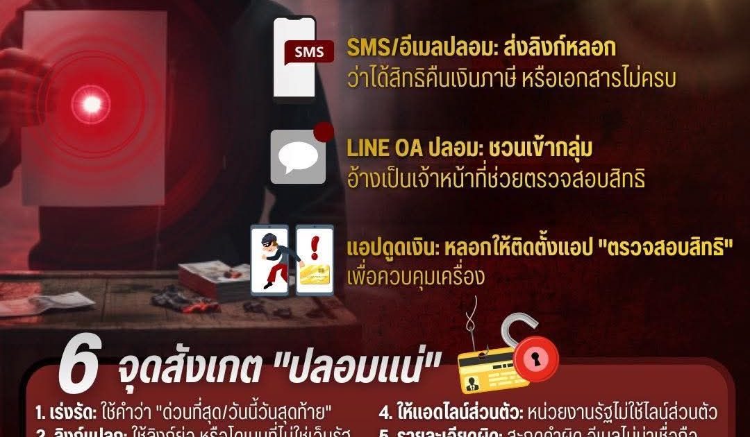 อย่าเชื่อ!! มุกแอบอ้างหน่วยงานรัฐหลอกลดหย่อนภาษี ล้วงข้อมูล ลวงโอนเงิน ที่มาในรูปแบบ SMS ปลอม ไลน์ปลอม แอปควบคุมโทรศัพท์มือถือ