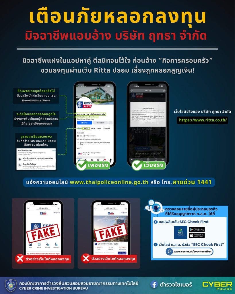 3. ตรวจสอบกับเว็บไซต์/เพจทางการก่อนทุกครั้ง – อย่างกรณี Ritta ที่มีประกาศเตือนบนเว็บจริงแล้ว
