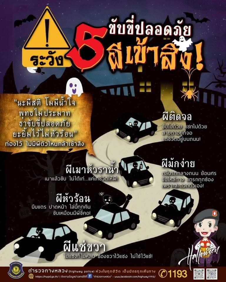 #ฮาโลวีน ตำรวจทางหลวงเตือน “ขับขี่ปลอดภัย ระวัง 5 ผีเข้าสิง!”