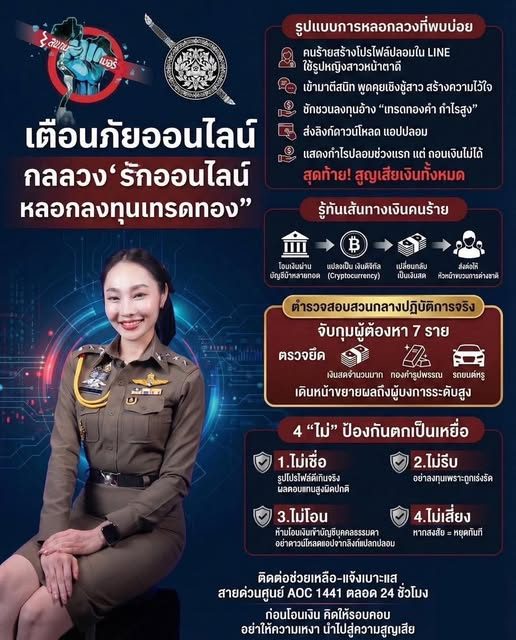 ระวังกลุ่มมิจฉาชีพใช้กลลวง “รักออนไลน์ ชวนลงทุน”