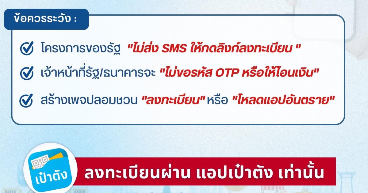 – การลงทะเบียนที่ถูกต้องทำได้เฉพาะแอป “เป๋าตัง” และ “ถุงเงิน”