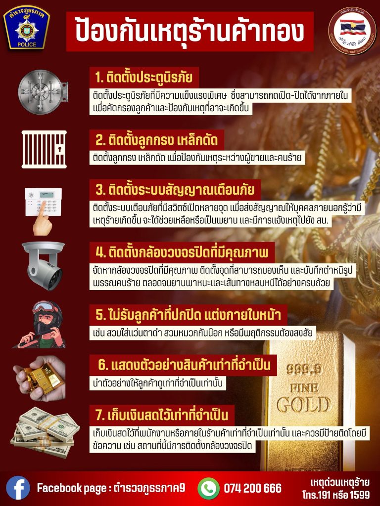 เพื่อเป็นแนวทางการเฝ้าระวังป้องกันเหตุเกี่ยวกับร้านทอง ในยุคที่ราคาคำสูง ซึ่งอาจจะล่อตา ล่อใจให้คนร้ายก่อเหตุ