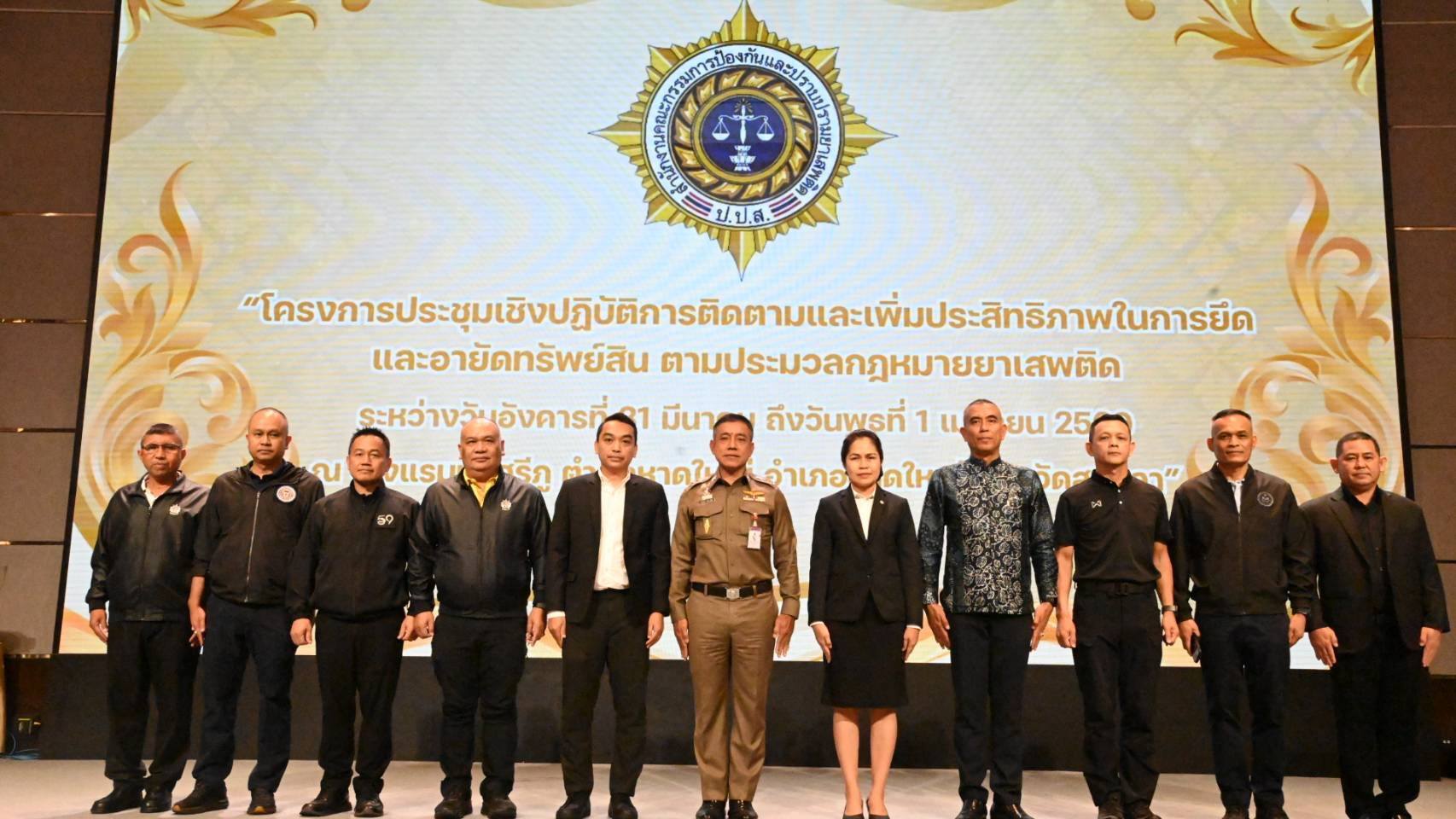 เป็นประธานพิธีเปิดโครงการประชุมเชิงปฏิบัติการติดตามและเพิ่มประสิทธิภาพในการยึดและอายัดทรัพย์สิน ตามประมวลกฎหมายยาเสพติด ระหว่างวันอังคารที่ 31 มีนาคม – วันพุธที่ 1 เมษายน 2569 จัดโดย สำนักงาน ป.ป.ส.ภาค 9 เพื่อให้ความรู้แก่ เจ้าหน้าที่ตำรวจผู้ปฏิบัติงานด้านยาเสพติด