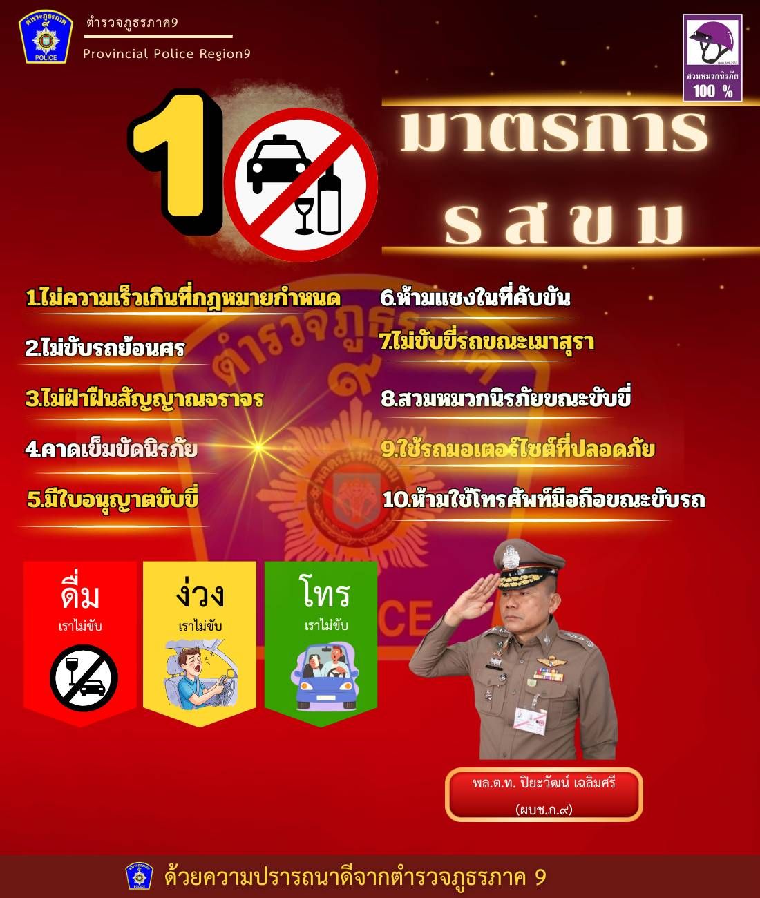 เริ่มวันนี้ 7 วันคุมเข้ม กวดขันวินัยจราจร 10 ข้อหาหลัก ตำรวจตั้งใจดูแลอำนวยการจราจร ลดอุบัติเหตุเทศก