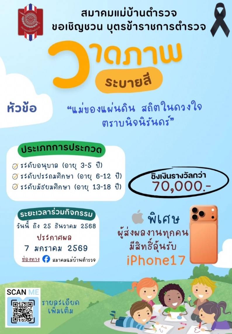 …สมาคมแม่บ้านตำรวจชวนบุตรข้าราชการตำรวจประกวดวาดภาพระบายสี “แม่ของแผ่นดิน สถิตในดวงใจ ตราบนิจน