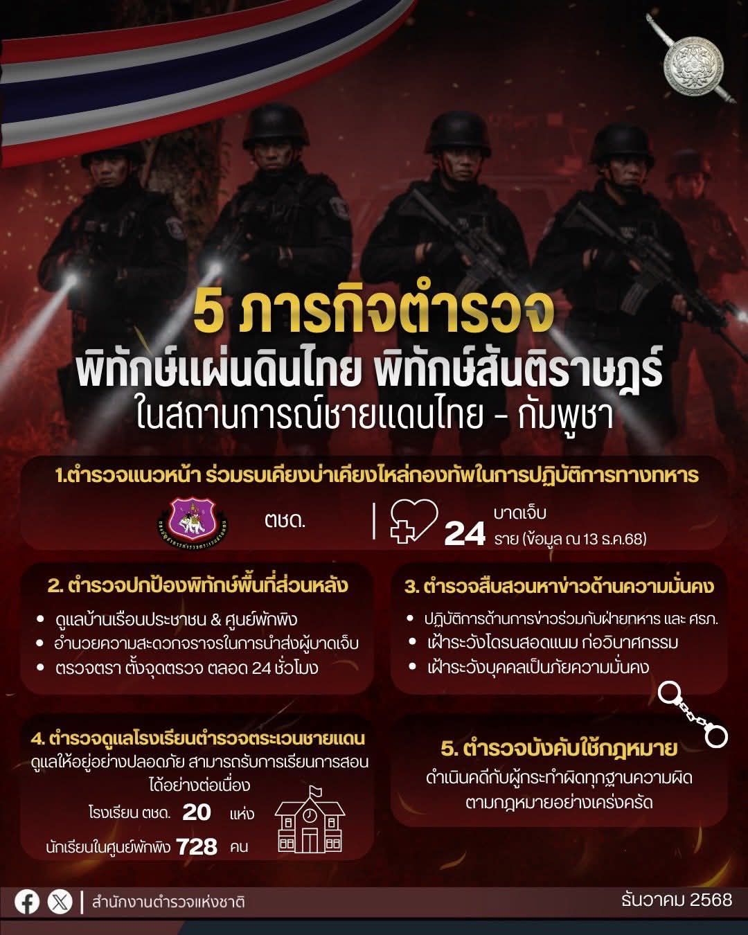 ผบ.ตร.กำชับตำรวจเดินหน้า 5 ภารกิจพิทักษ์อธิปไตยชายแดนไทย – กัมพูชา “ตชด. และชุดปฏิบัติการพิเศษ” สู้แ