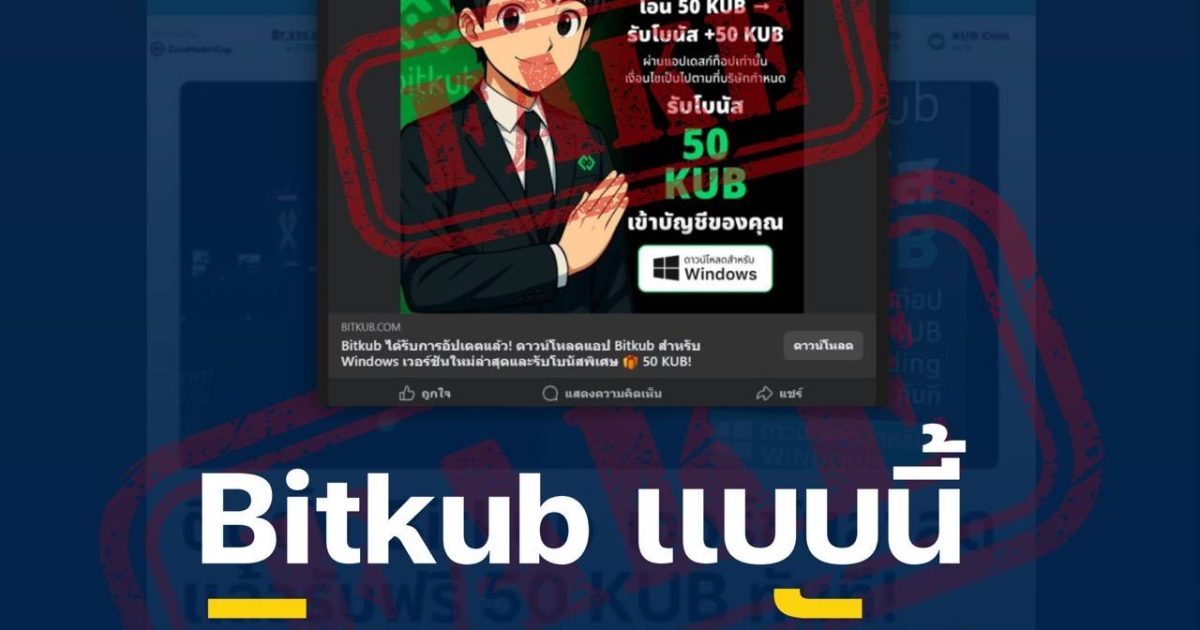 หากประชาชนท่านใดพบเห็นโฆษณาที่มีการแอบอ้าง Bitkub ประกาศให้ดาวน์โหลดแอปพลิเคชันชื่อว่า “Bitkub Desktop”