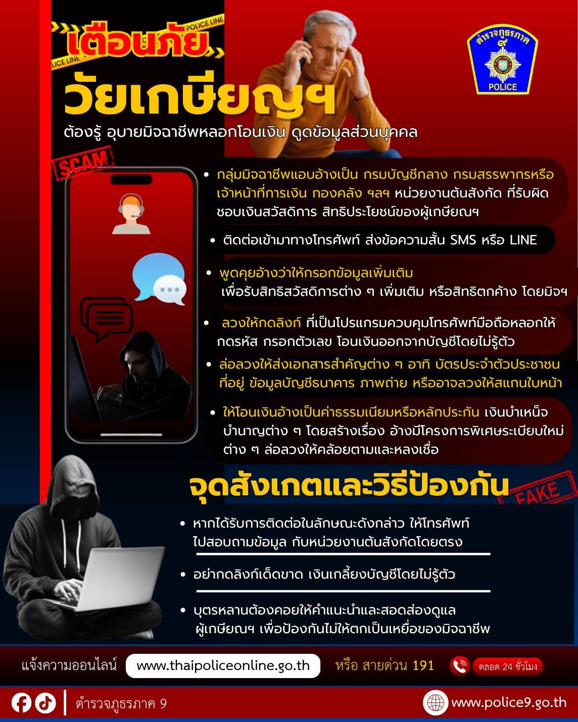 ตือนภัย วัยเกษียณต้องรู้อุบายมิจฉาชีพด้วยความปรารถนาดีจาก : ตำรวจภูธรภาค9