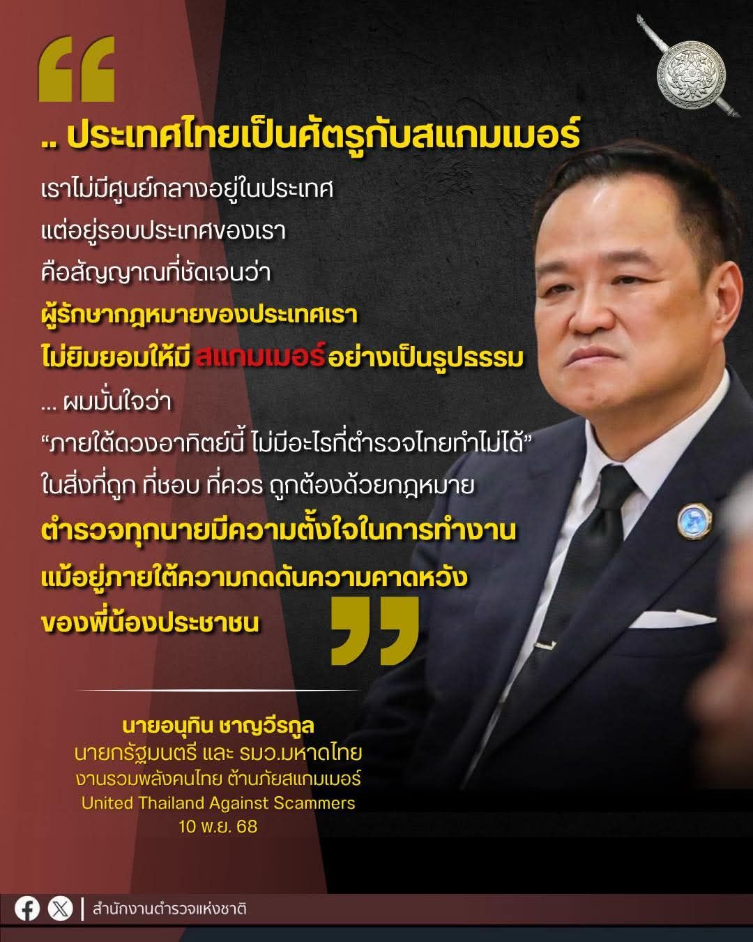 “.. ประเทศไทยเป็นศัตรูกับสแกมเมอร์เราไม่มีศูนย์กลางอยู่ในประเทศแต่อยู่รอบประเทศของเราคือสัญญาณที่ชัด