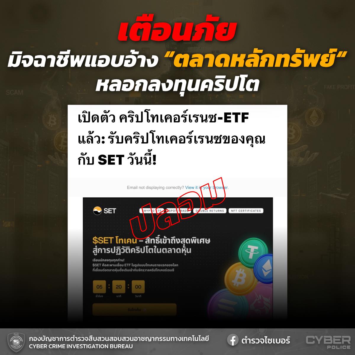 เตือนภัย! มิจฉาชีพแอบอ้าง “ตลาดหลักทรัพย์” หลอกลงทุนคริปโต.จุดสังเกตและกลโกงหลักของมิจฉาชีพมิจฉาชีพม