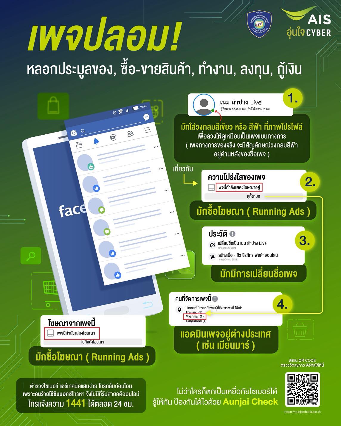 ช้อปปลอดภัย ไม่ตกเป็นเหยื่อ! ตำรวจไซเบอร์ผนึกกำลัง AIS เตือนภัยเพจปลอมมิจฉาชีพมาในหลากหลายรูปแบบ เพจ