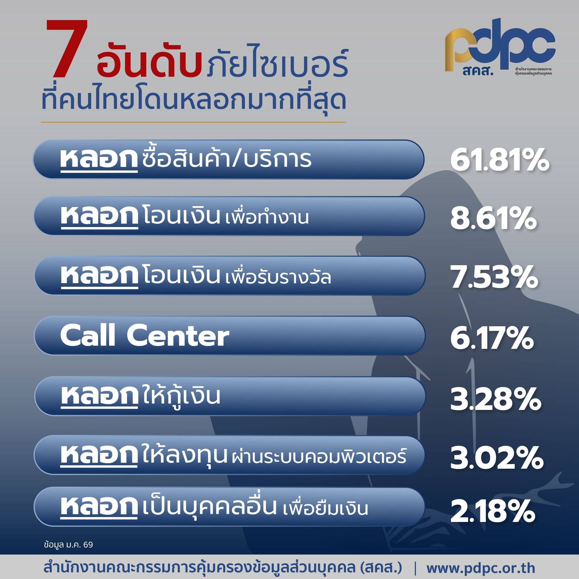 รู้ไหมว่า “ข้อมูลส่วนบุคคล” คือ สารตั้งต้นของอาชญากรรมออนไลน์สคส. เผยสถิติ 7 อันดับภัยไซเบอร์ที่คนไท