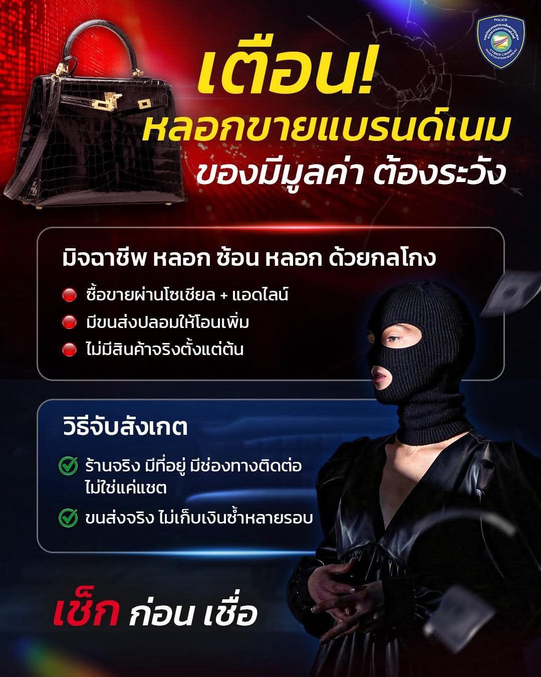ตำรวจไซเบอร์ เตือน หลอกขายแบรนด์เนมของราคาแพงที่ไม่มีอยู่จริง!!! ต้องระวัง