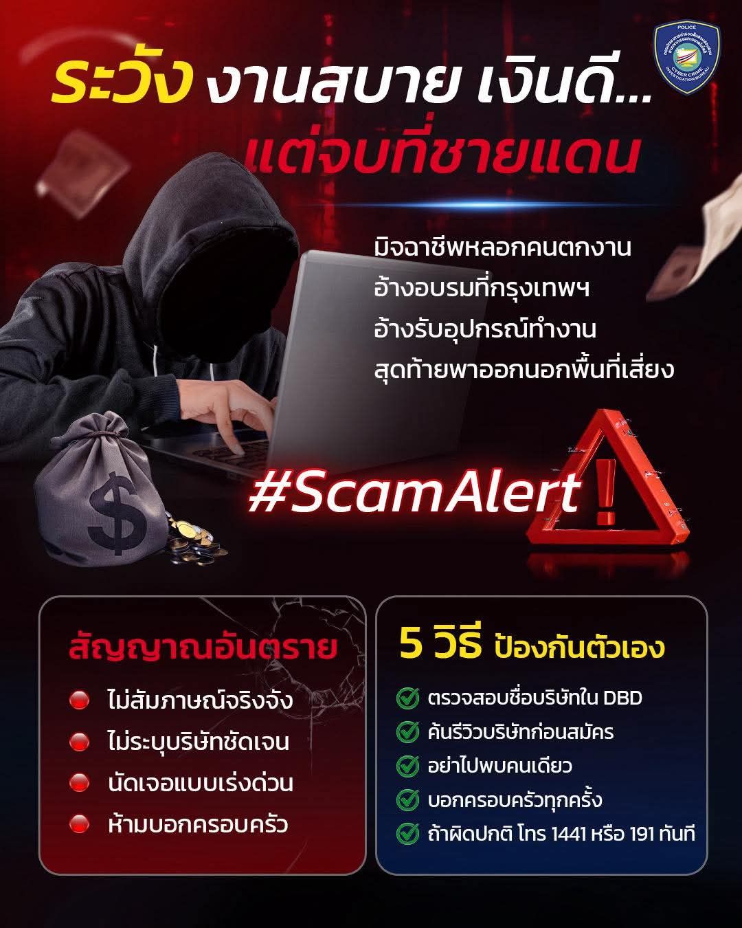 งานสบาย เงินดี ต้องระวัง! มิจฉาชีพระบาดหนัก ในกลุ่มหางาน ต้องเช็กก่อนเชื่อด้วยความห่วงใยจาก “ตำรวจไซ